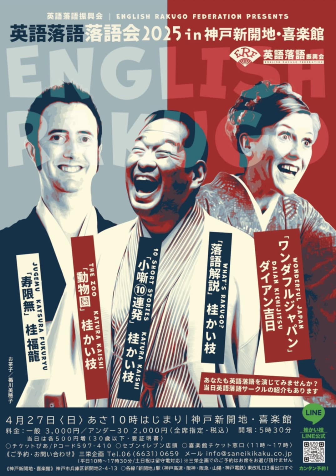 The English Rakugo Federation proudly presents “English Rakugo Performance 2025” at the historic Kirakukan Theater in Shinkaichi, Kobe.